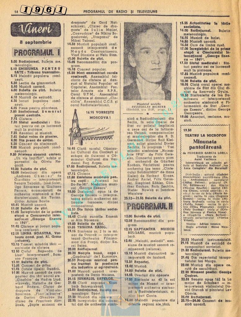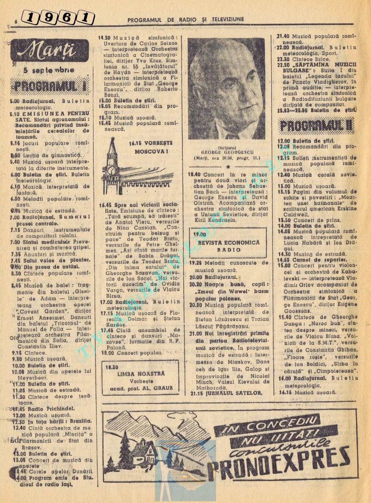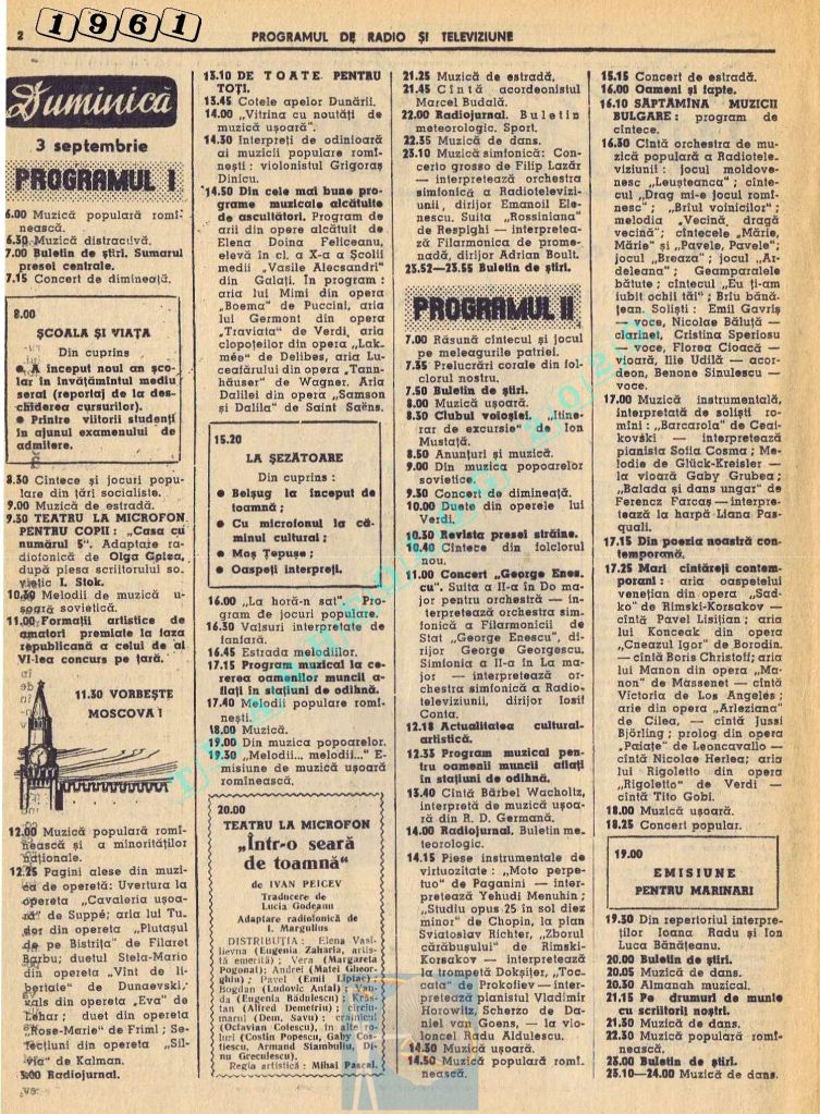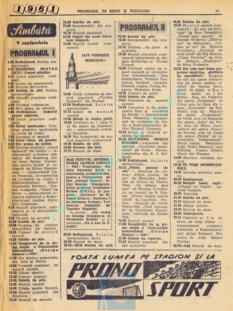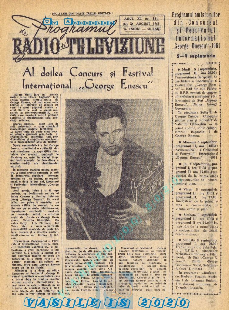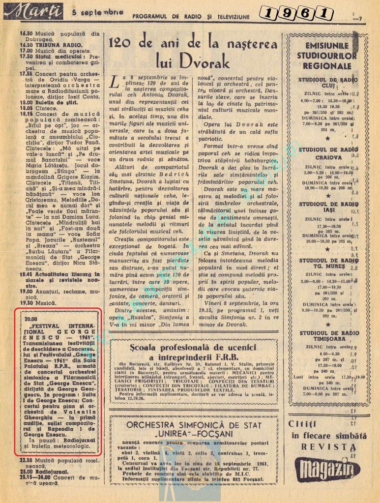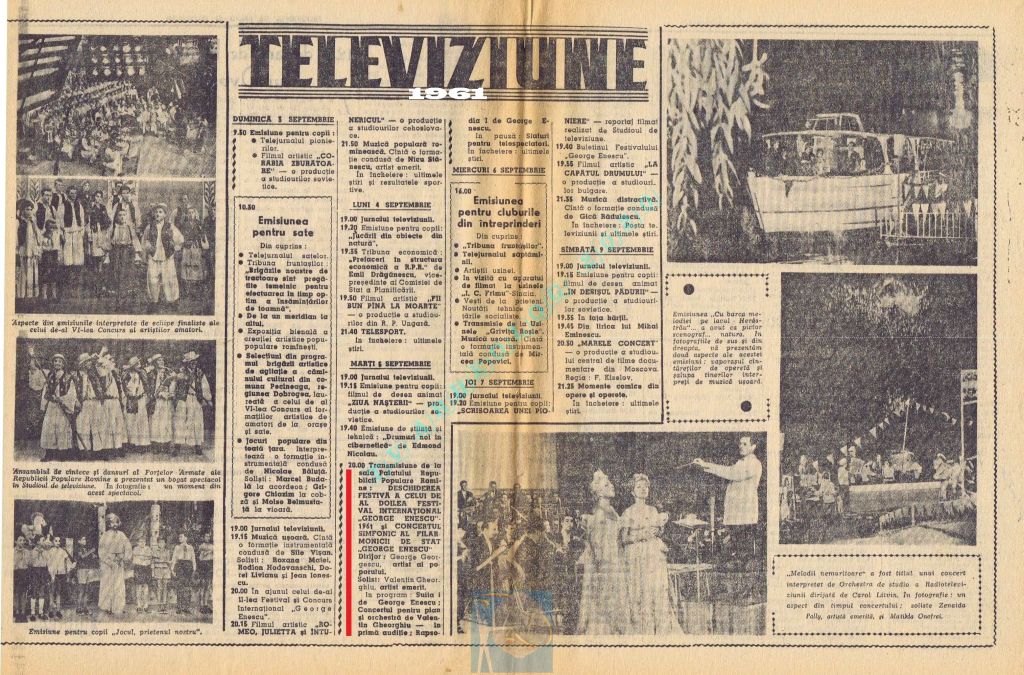 Marți, 5 septembrie 1961 s-a transmis în direct la radio și la televiziune deschiderea celei de-a doua ediții a Festivalului Internațional „George Enescu”.