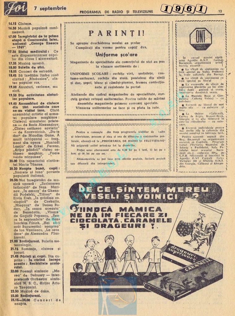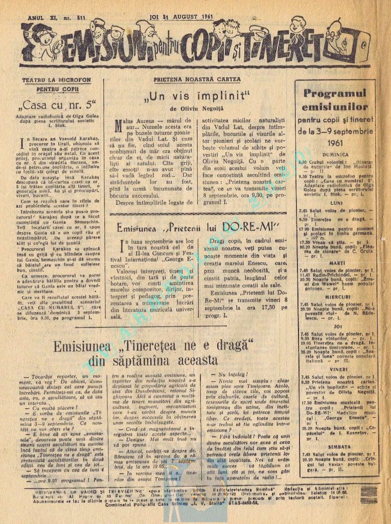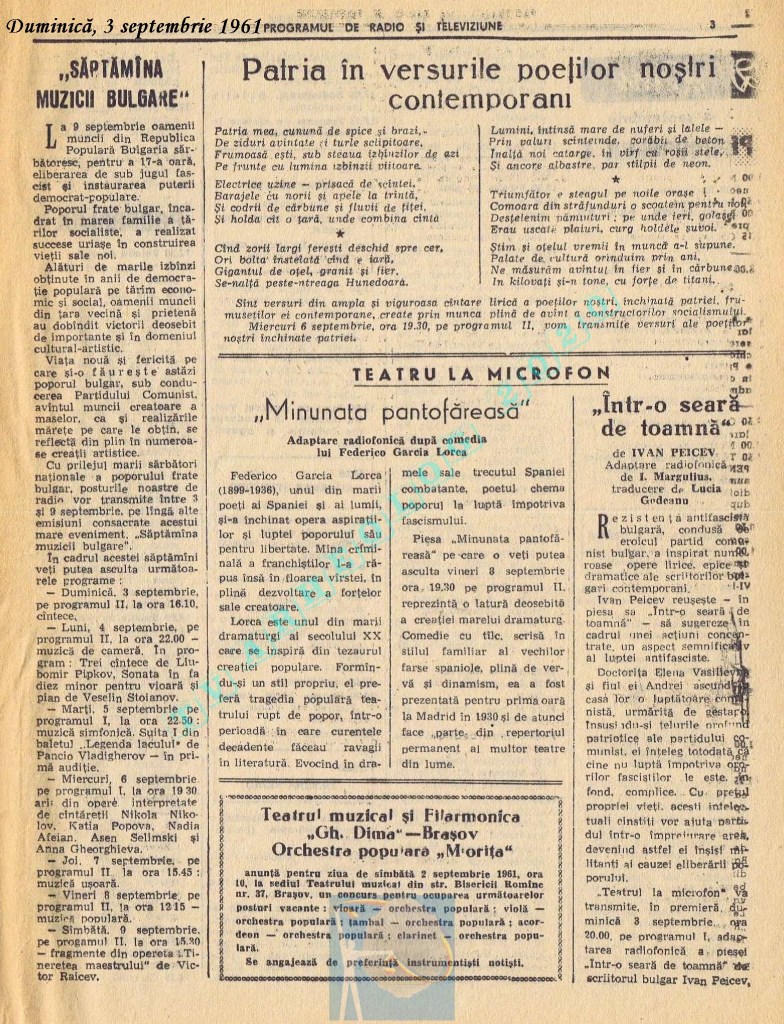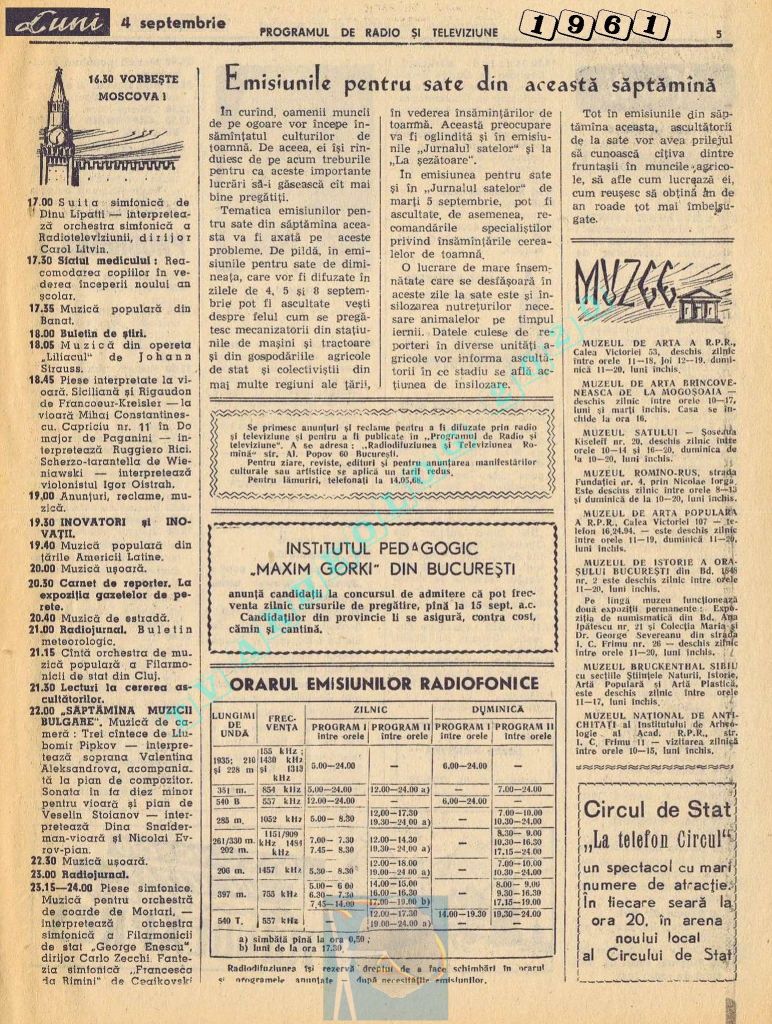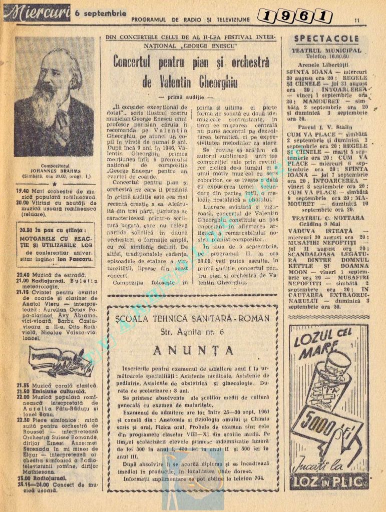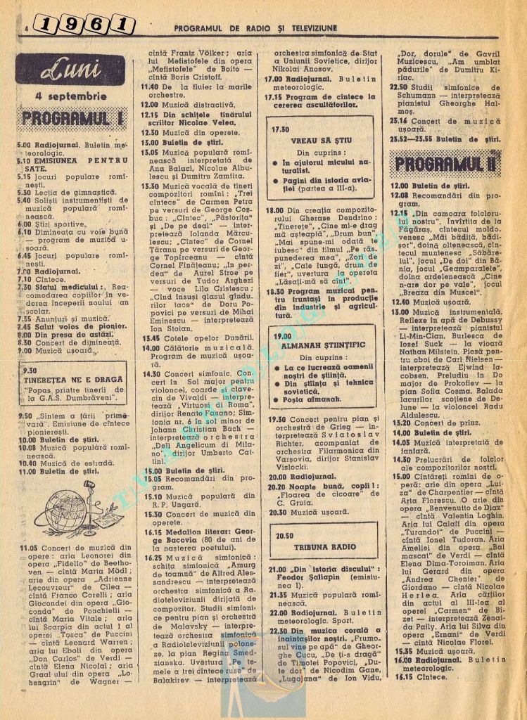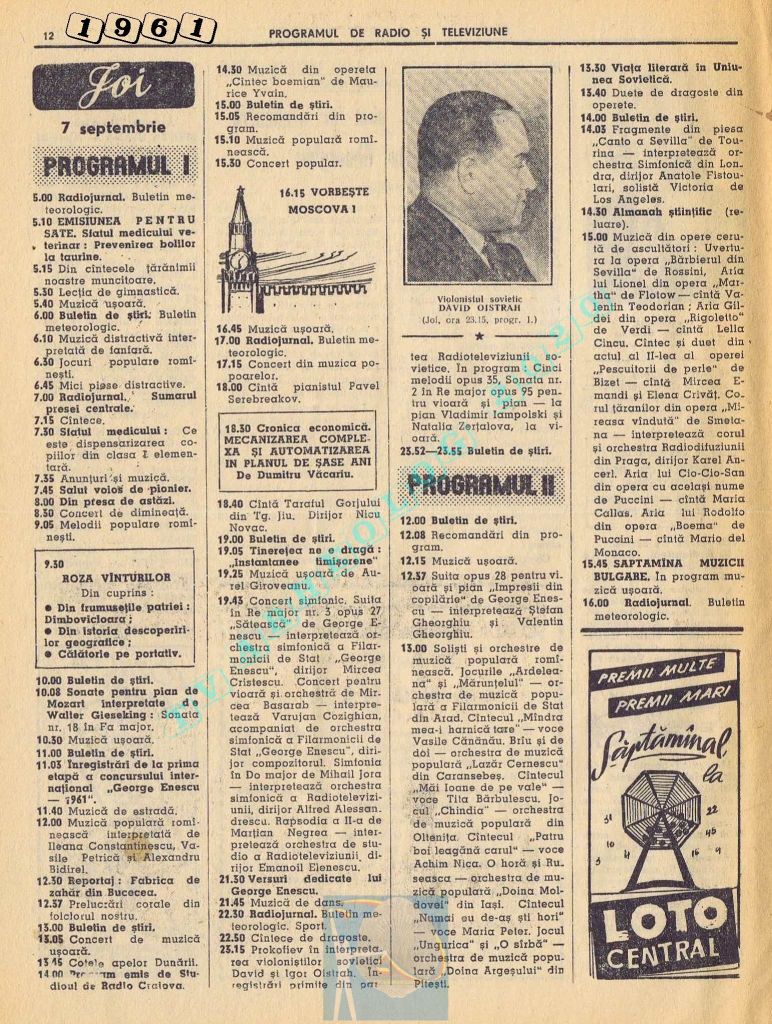 Marți, 5 septembrie 1961 s-a transmis în direct la radio și la televiziune deschiderea celei de-a doua ediții a Festivalului Internațional „George Enescu”.