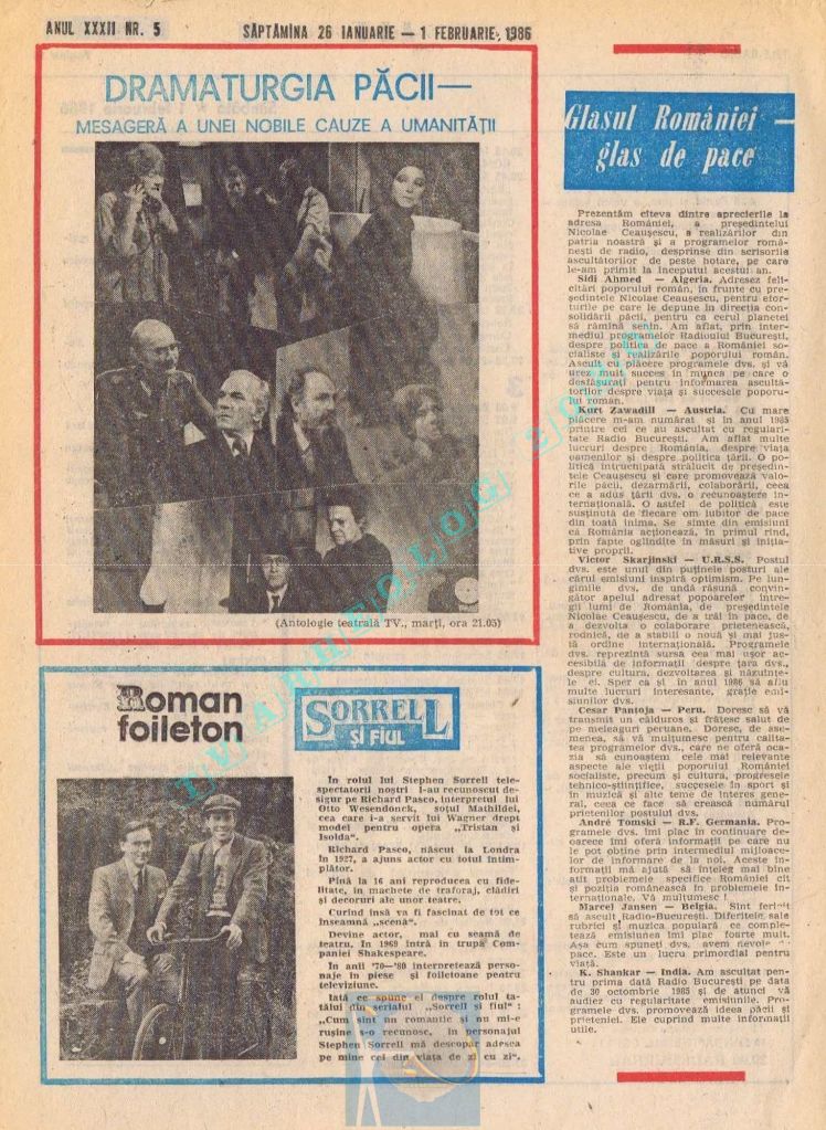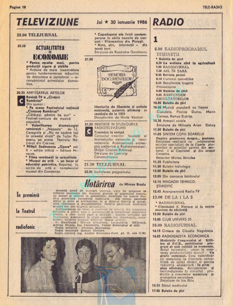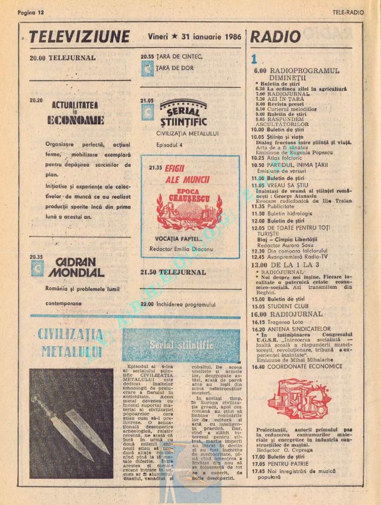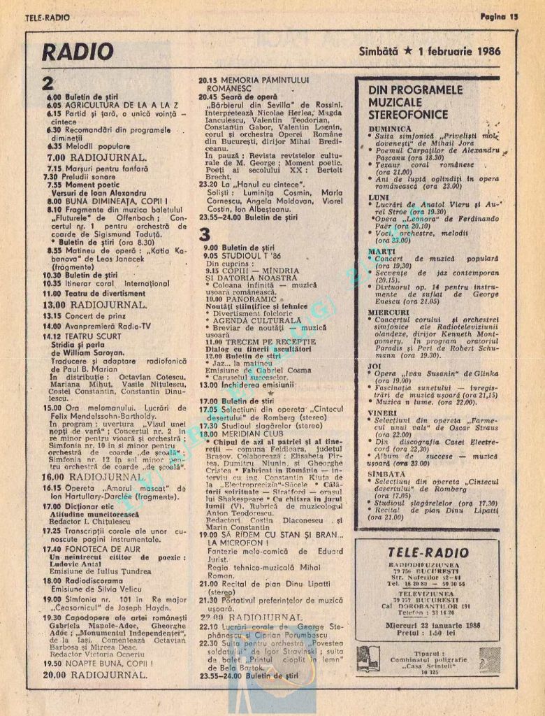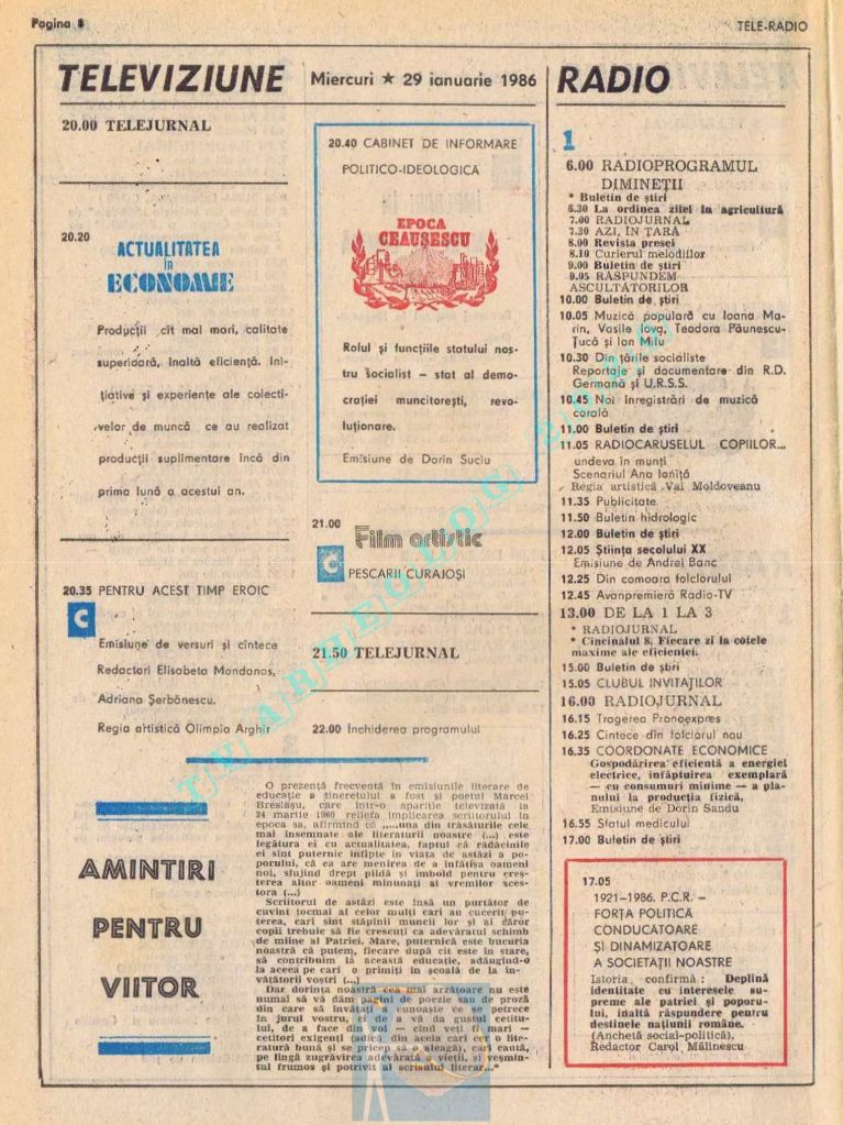 Pentru că ziua Tovarășului (duminică, 26 ianuarie 1986) ar fi trebuit tipărite alb-negru, paginile 2-3 au conținut fotografii cu „Ctitorii ale Epocii Ceaușescu”, iar zilele de luni și marți au fost înghesuite fiecare pe câte o singură pagină. Situația s-a repetat și la aniversarea din 1988. Toate aceste artificii tipografice pentru ca pe paginile din ziua de naștere a lui Ceaușescu să fie cât mai multă culoare roșie !