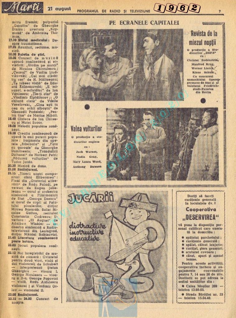 1962-561 19-25 august 1962 Partajează asta: Partajează pe X(Se deschide într-o fereastră nouă) X Partajează pe Facebook(Se deschide într-o fereastră nouă) Facebook Apreciază Încarc... Similare
