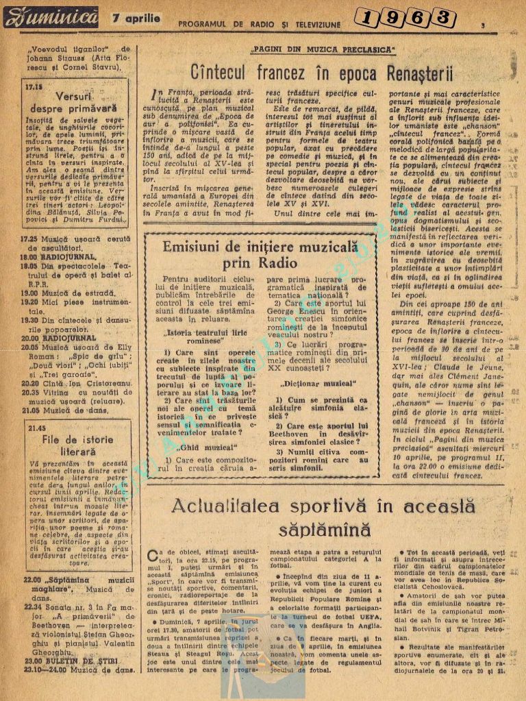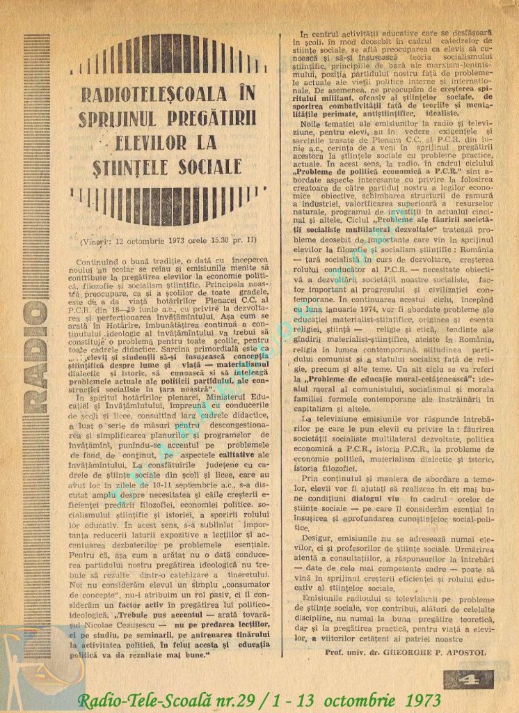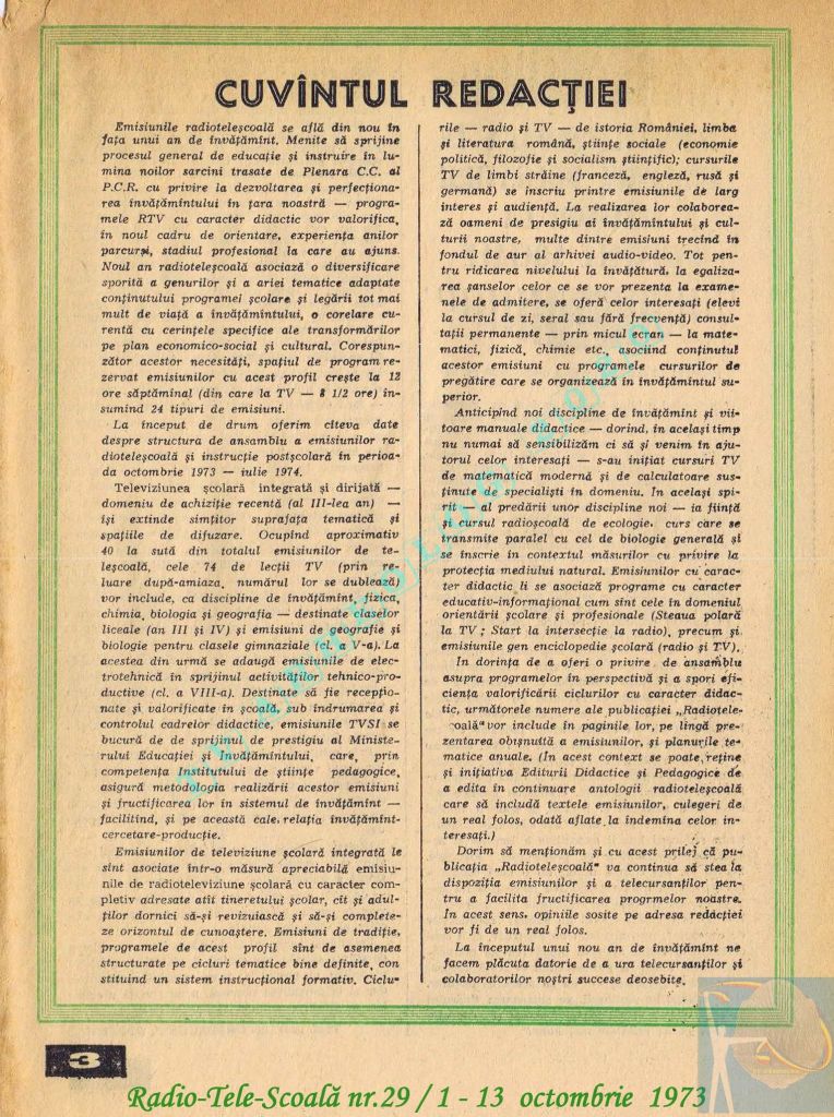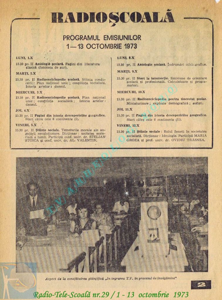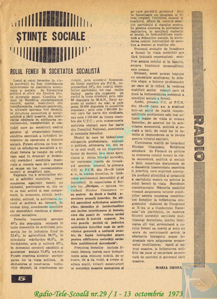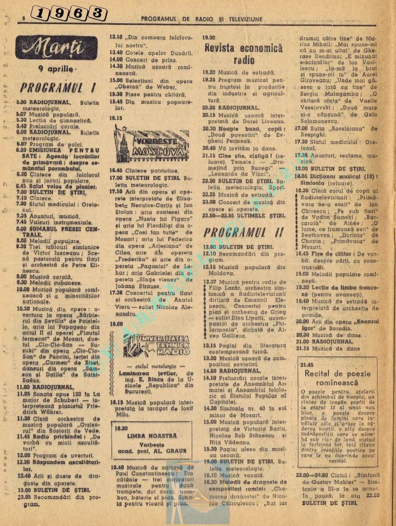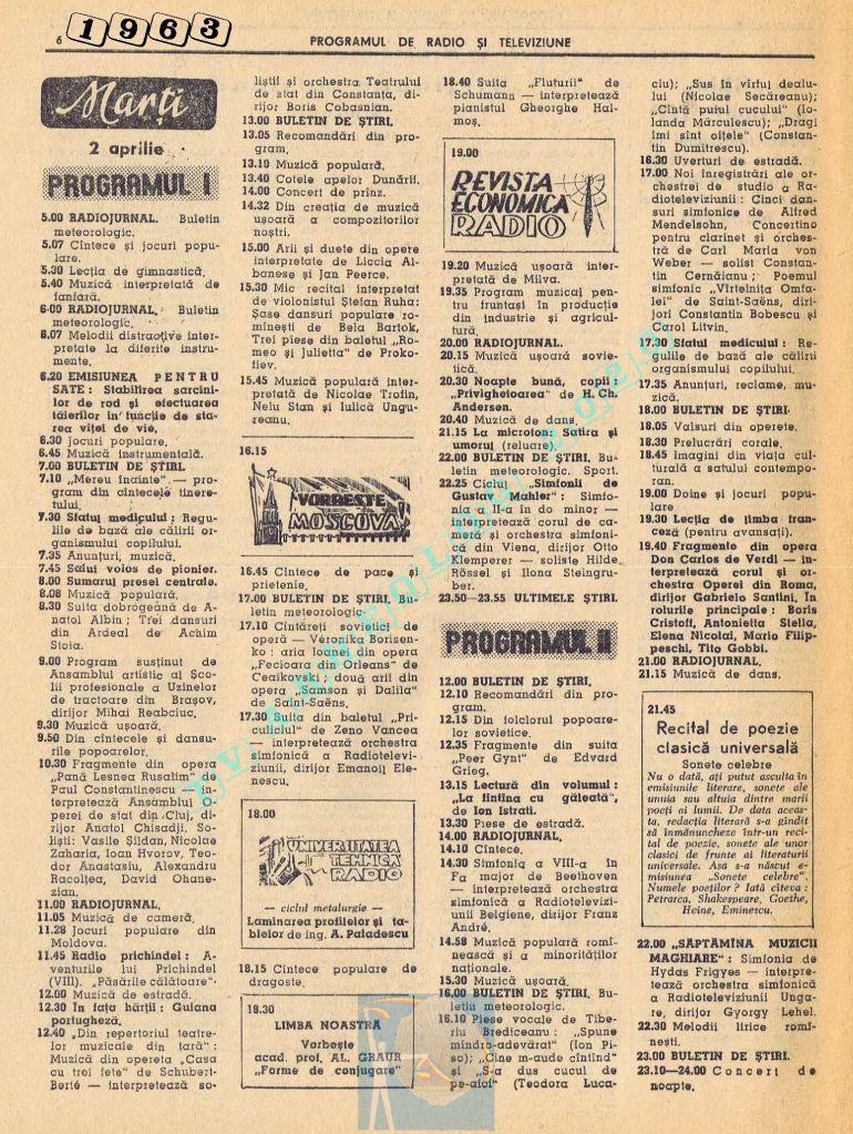 Ultimul jubileu al Partidului Comunist Român aduce modificări în paginația acestui număr: zilele de marți și miercuri înghesuite pe câte o pagină pentru a favoriza aniversarea a 65 de ani de la controversata dată de naștere a Partidului (8 mai 1921). Paginile 14 și 15 nu conțin programe radio-tv, ci avanpremiere și Poșta tehnică care primește un spațiu generos.