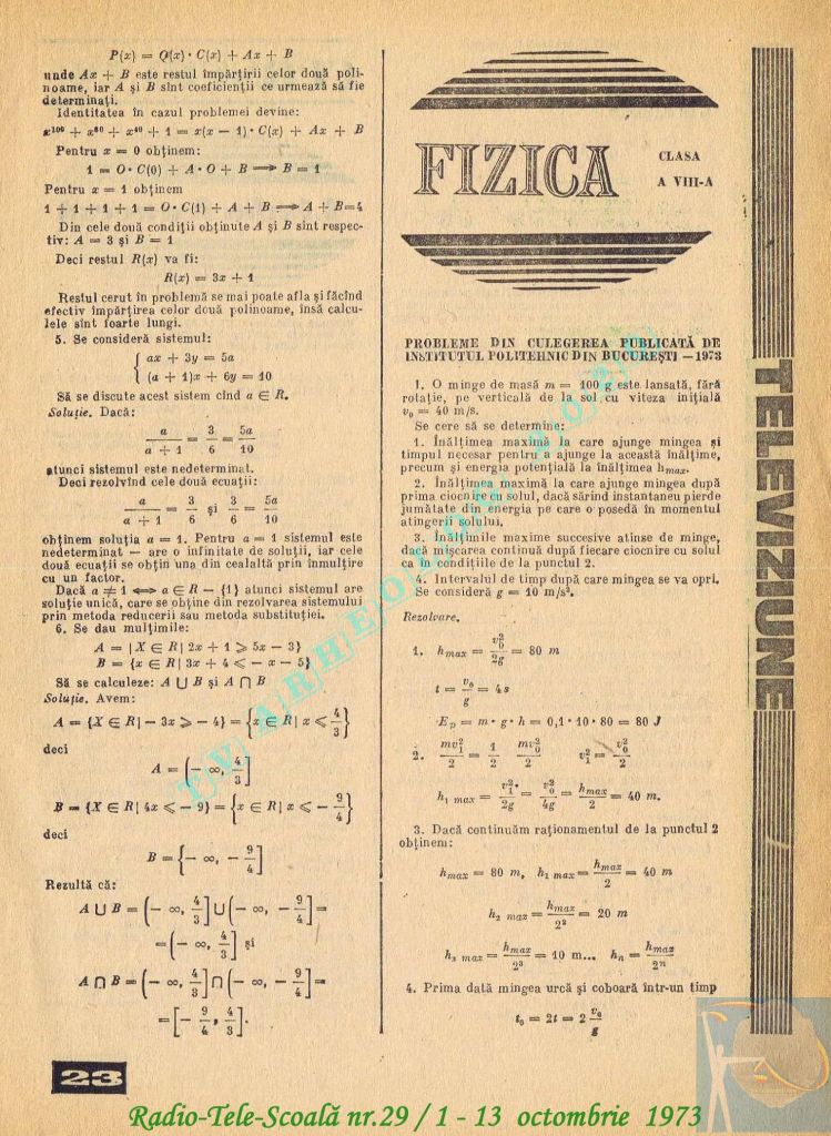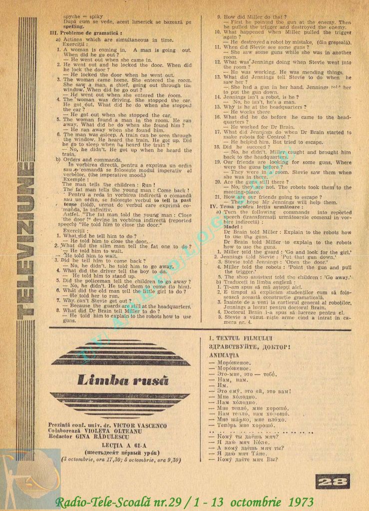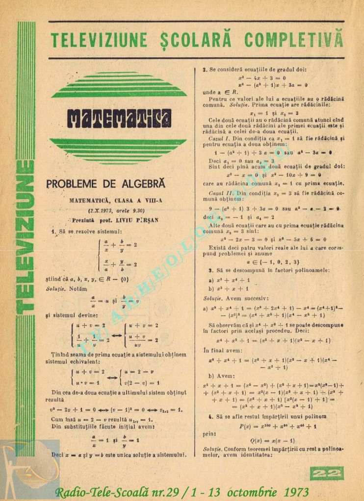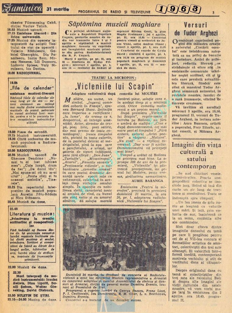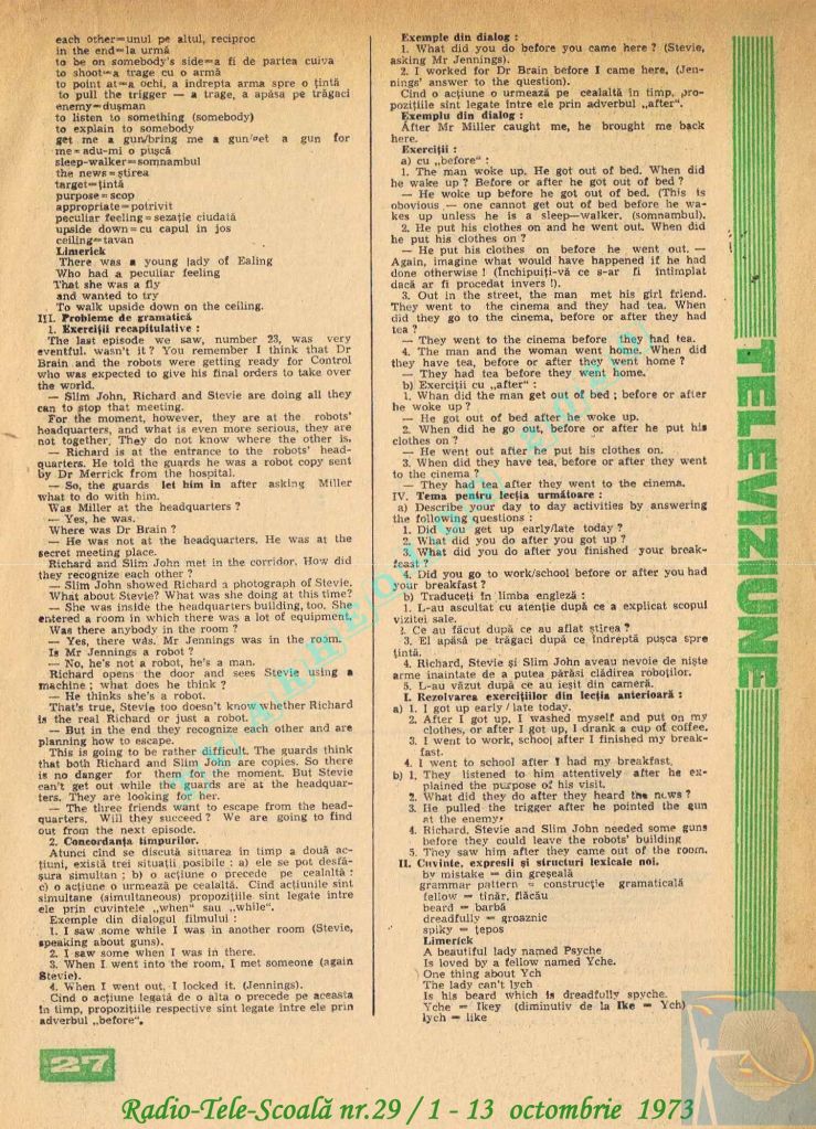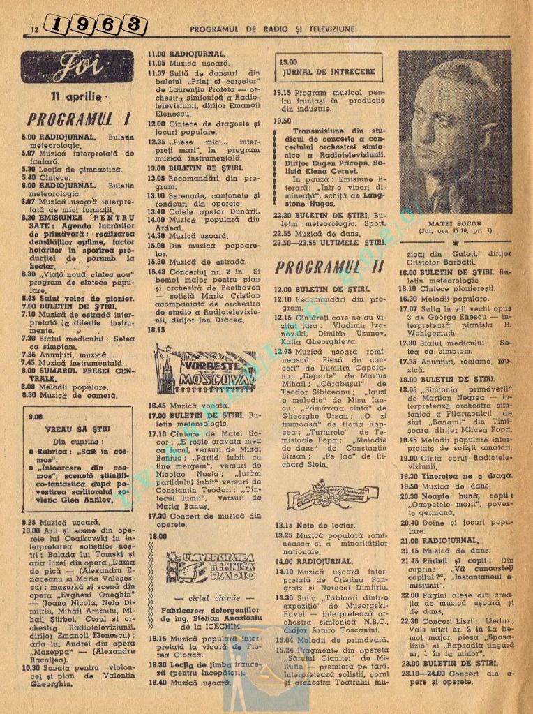 Ultimul jubileu al Partidului Comunist Român aduce modificări în paginația acestui număr: zilele de marți și miercuri înghesuite pe câte o pagină pentru a favoriza aniversarea a 65 de ani de la controversata dată de naștere a Partidului (8 mai 1921). Paginile 14 și 15 nu conțin programe radio-tv, ci avanpremiere și Poșta tehnică care primește un spațiu generos.