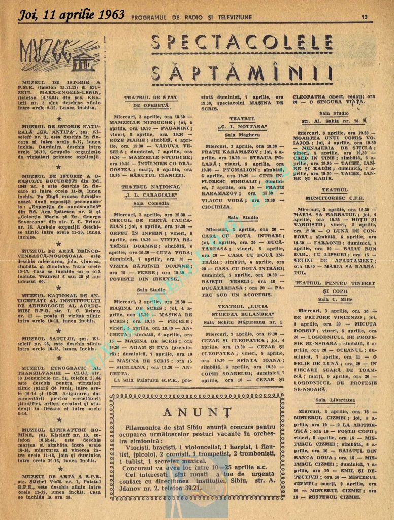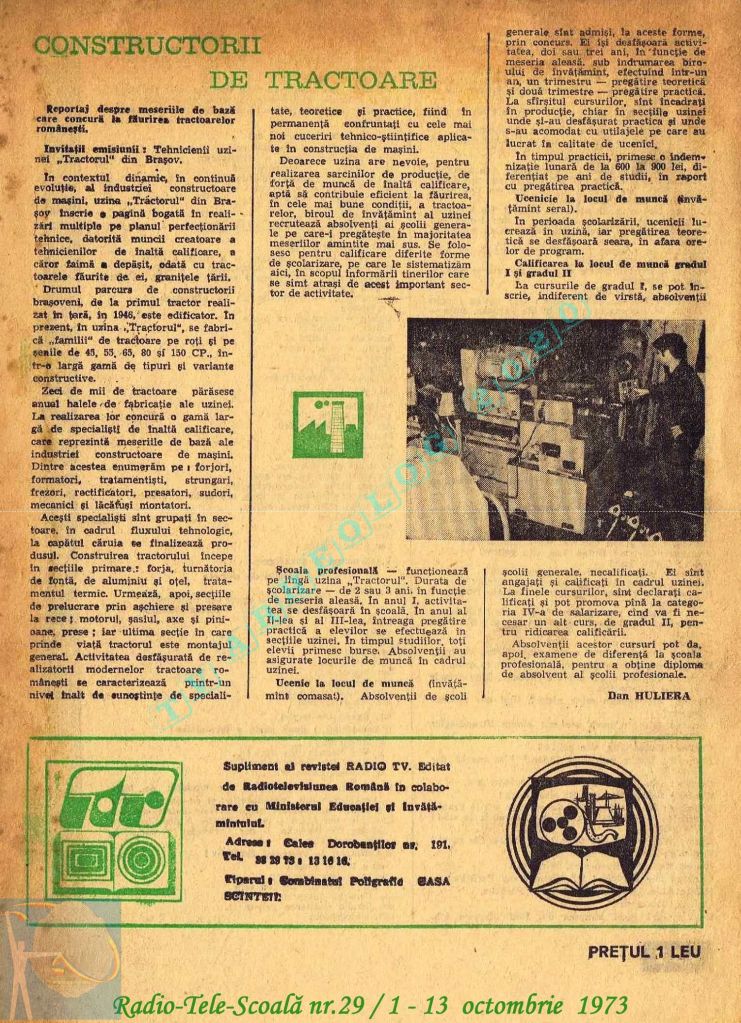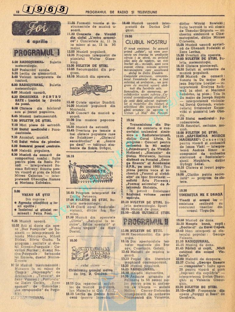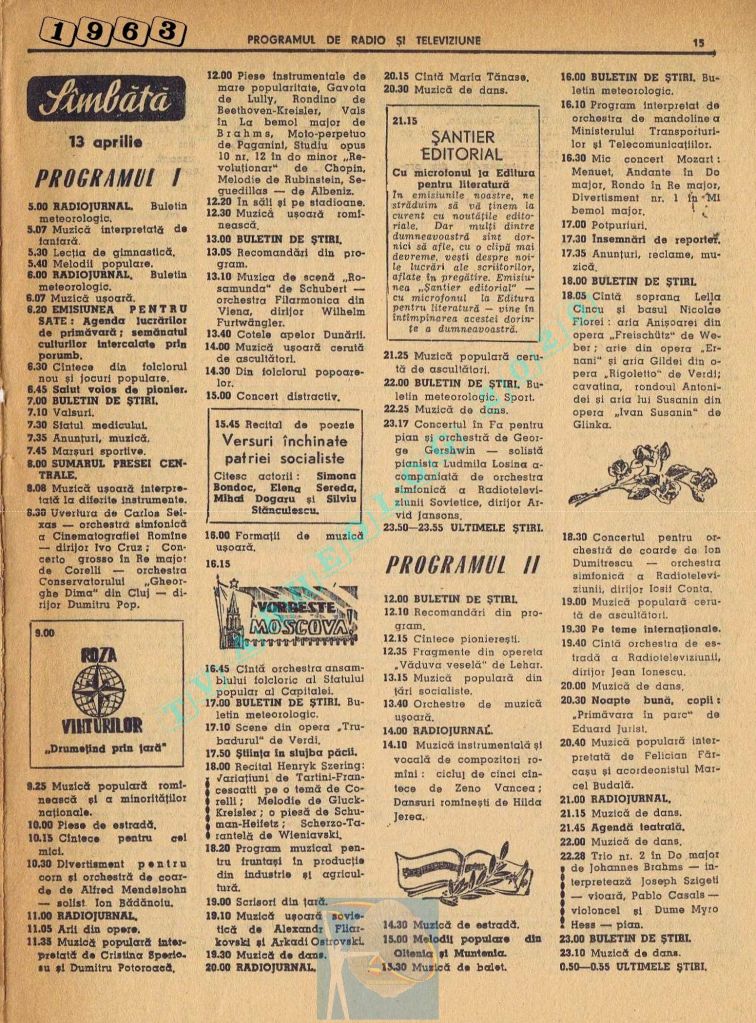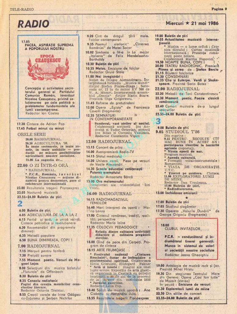 Titluri interesante în programul tv de vineri, 16 mai 1986: „Primăvară la Ulmi. 50 de ani de la Procesul luptătorilor comuniști și antifasciști de la Brașov” După numai un an, la 15 noiembrie 1987, muncitorii brașoveni vor fi anti-comuniști !!!. La ora 21:05, „Criza valorilor în capitalism”. Și ca o gură de oxigen, din acea vineri se va difuza serialul științific „Din tainele mărilor” realizat de Jacques Yves Cousteau.