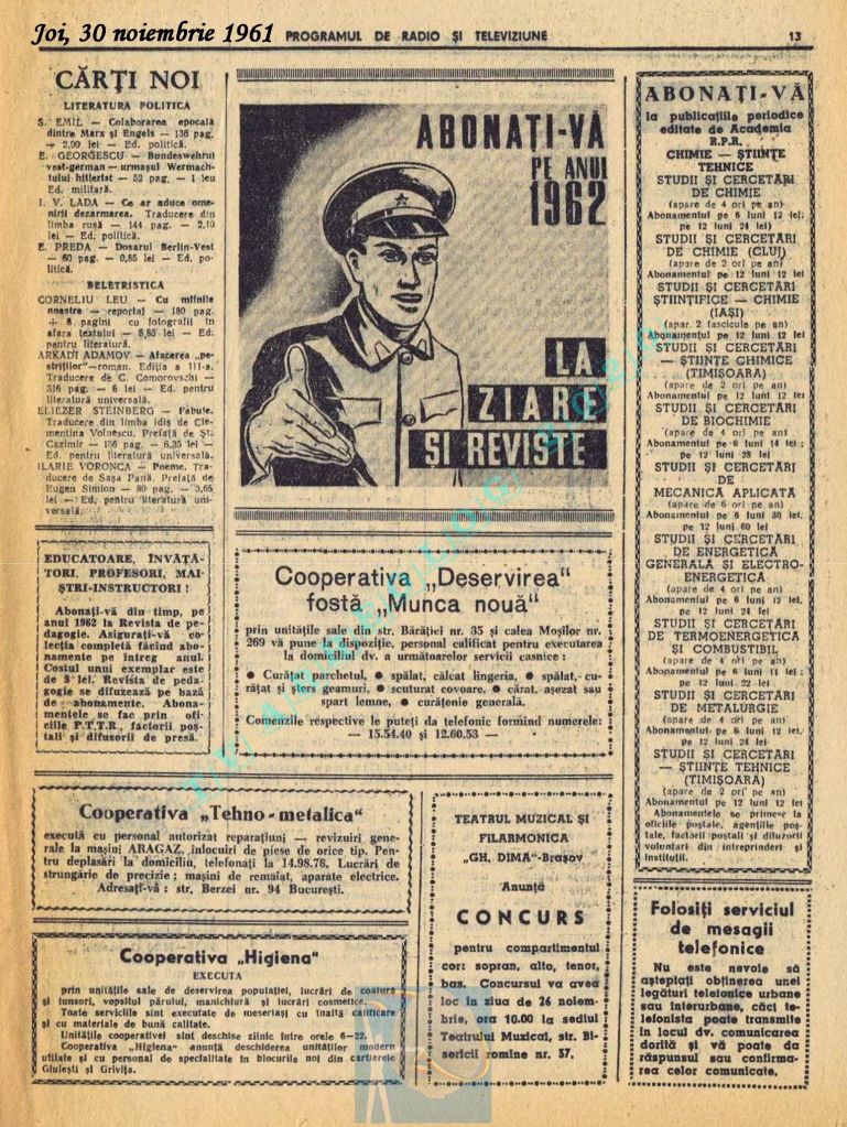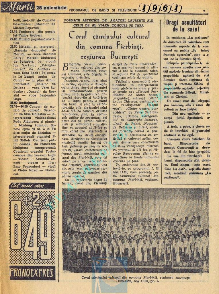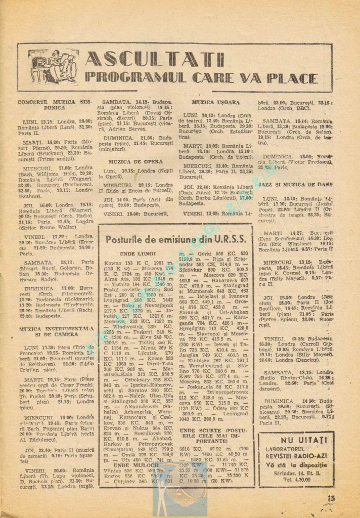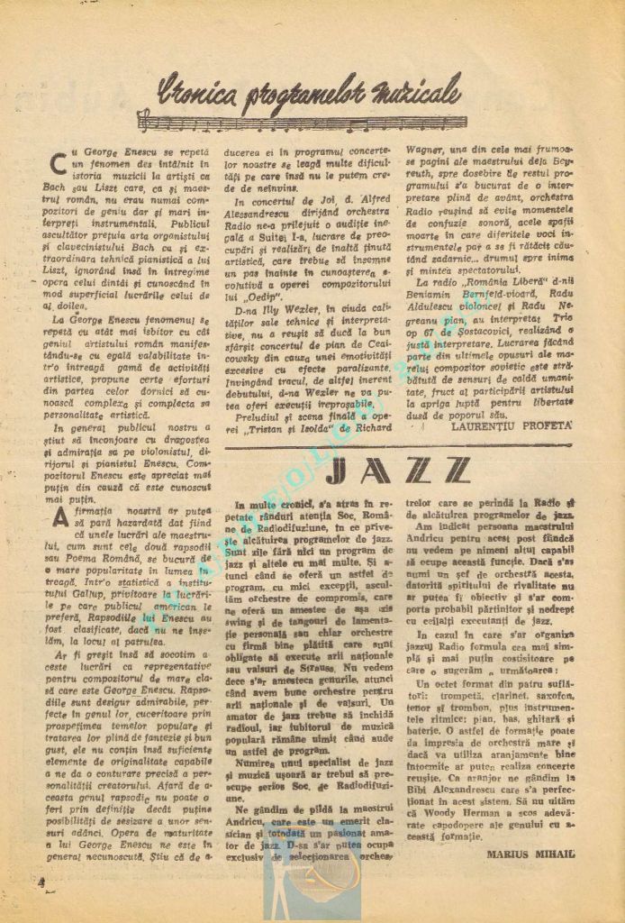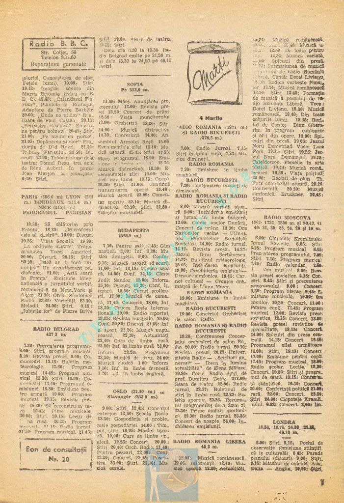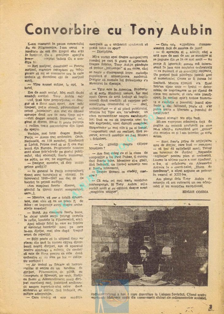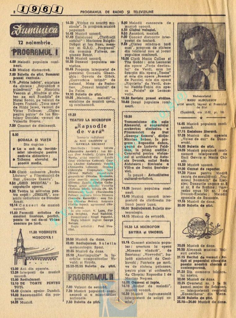 Extrem de interesant interviul dat de către directorul general al Societății Române de Radiodifuziune, Matei Socor în paginile 2,5 și 6 sub titlul „Radioul trebuie să devină un focar de cultură”. Îl aveți integral în format text, pentru că e o pagină de istorie prin numeroasele date oferite. M-a amuzat clasică vină a „vechii moșteniri”, a „clicii antonesciene”. Un articol despre Matei Socor ca director al Radioului găsiți la adresa https://www.historia.ro/sectiune/general/articol/matei-socor-primul-presedinte-comunist-al-radioului.