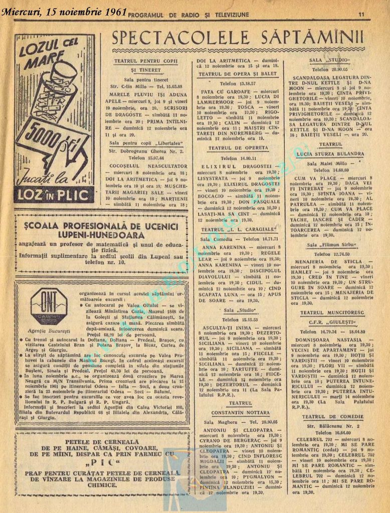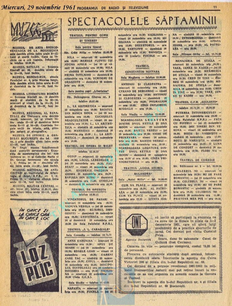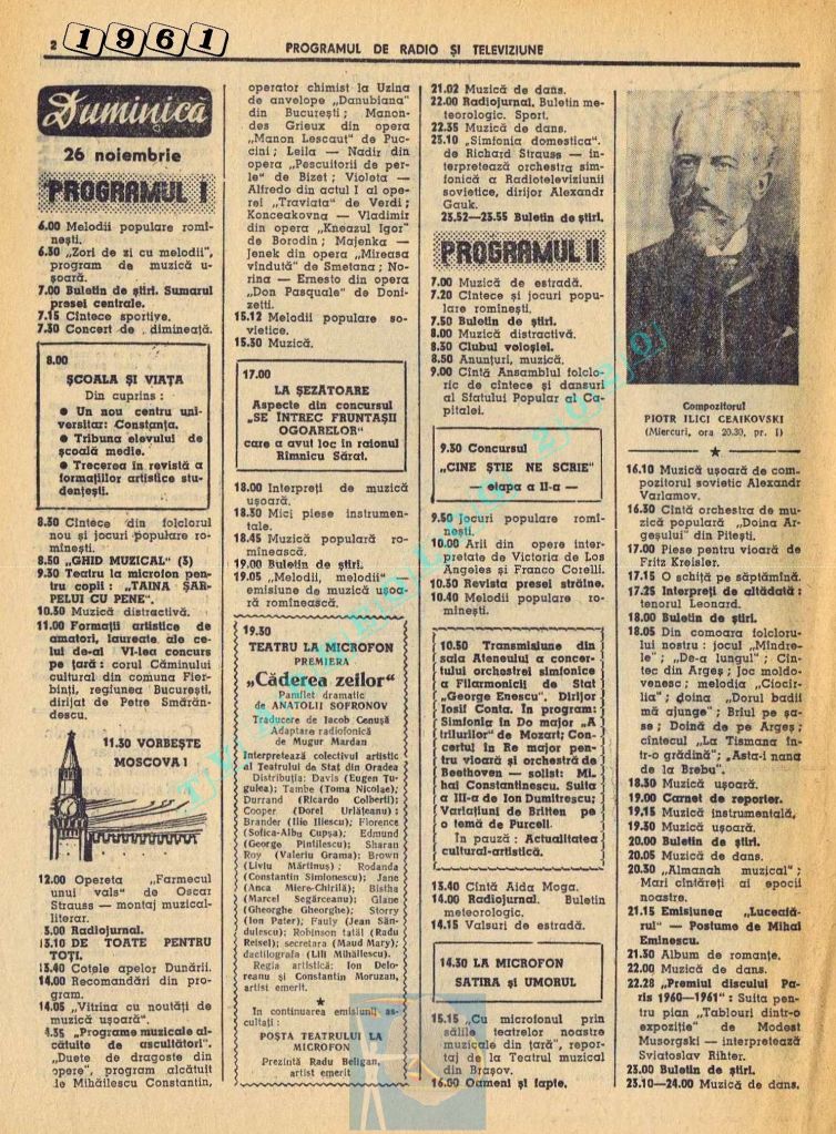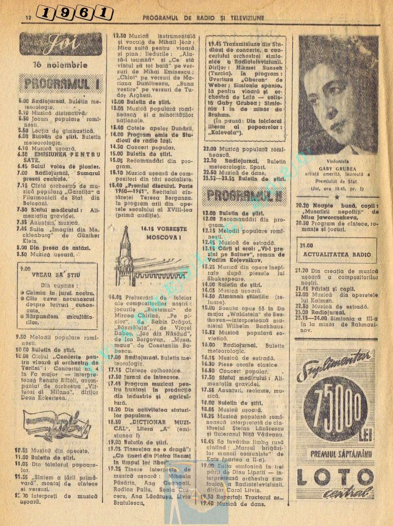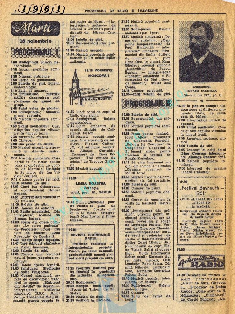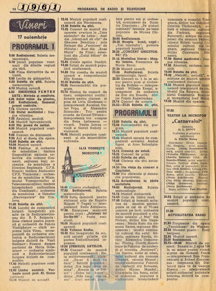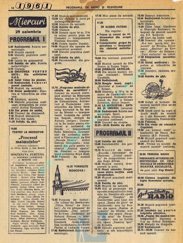 Nici o referire în tot cuprinsul revistei referitor la Ziua Unirii. Nici măcar în ziua de vineri, 1 decembrie 1961. Singurul lucru care iese în evidență este vigneta imperativ-vocativă „VORBEȘTE MOSCOVA!” La Televiziune nu se pune problema, deoarece s-a nimerit ca 1 decembrie să fie exact în ziua de pauză a Televiziunii din Moliere.