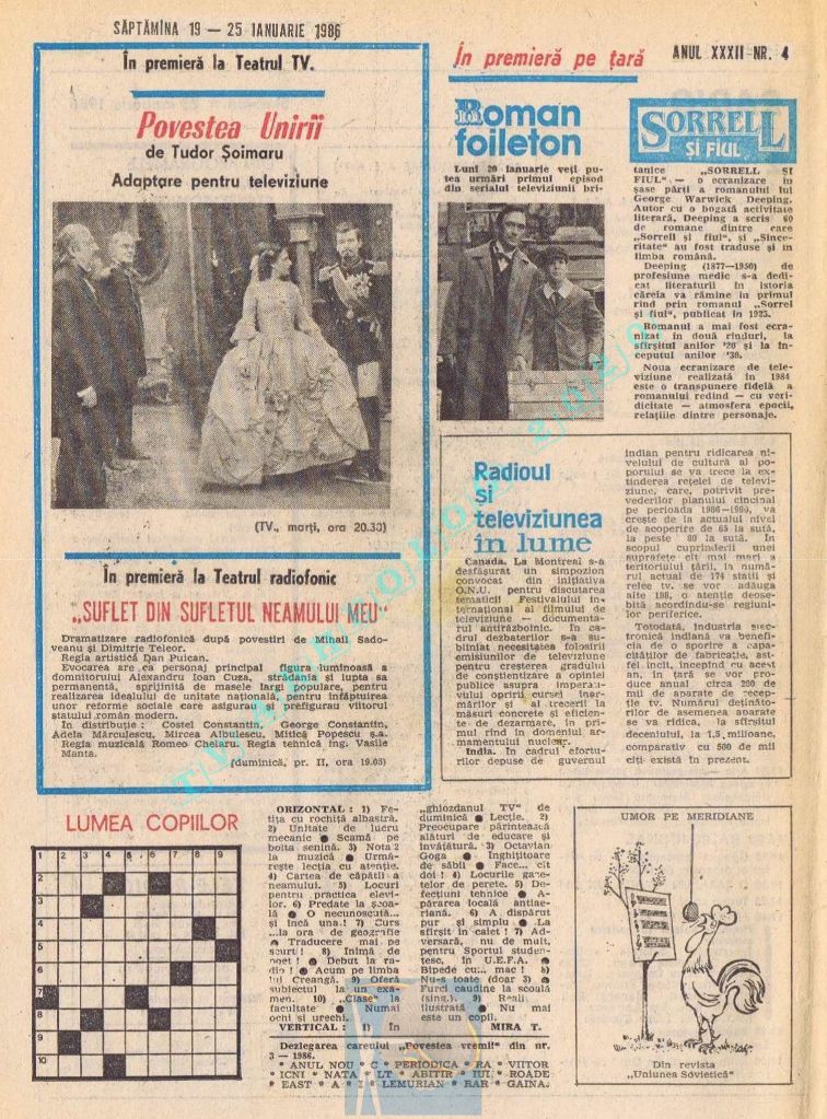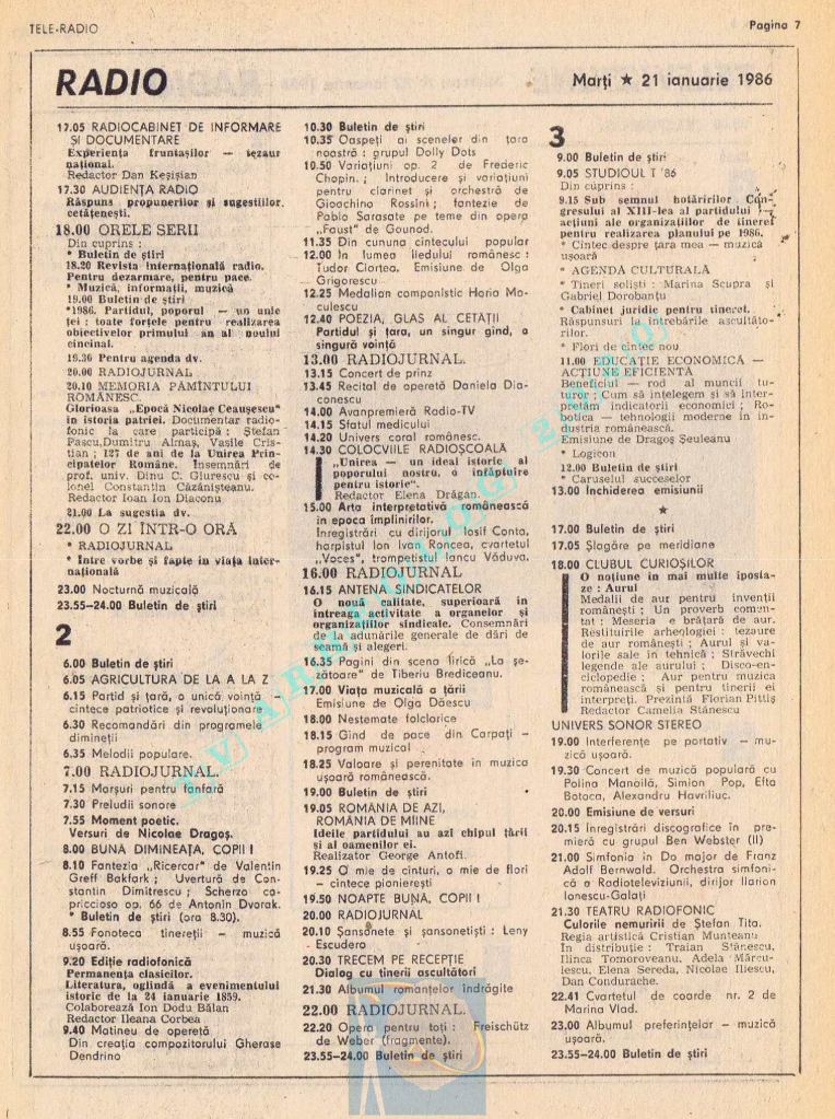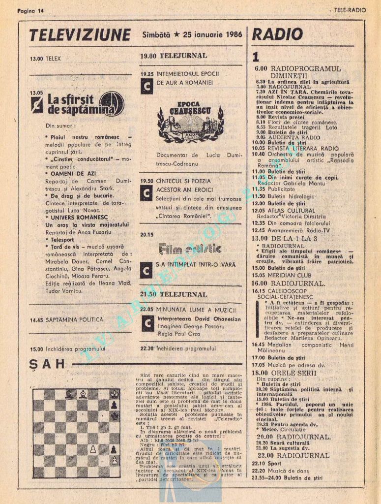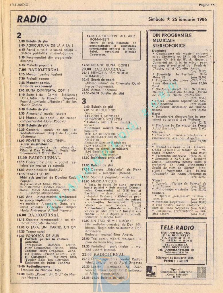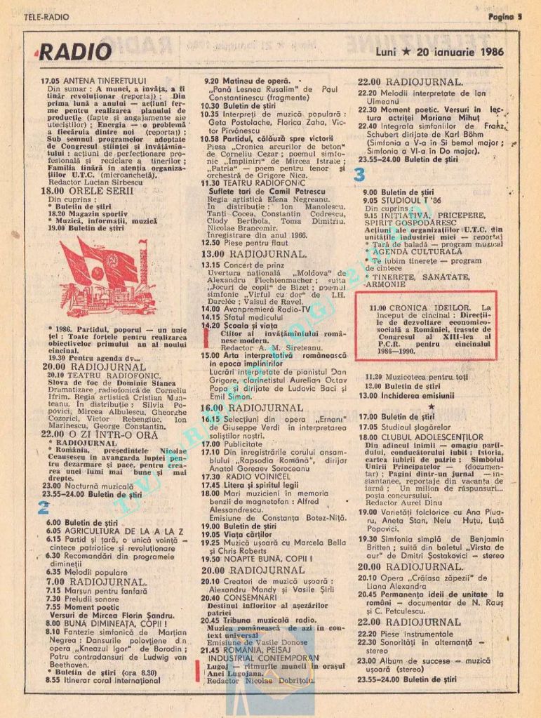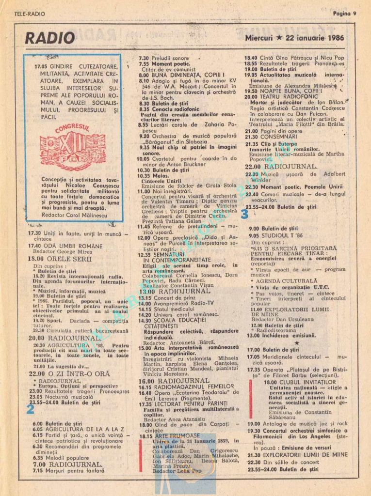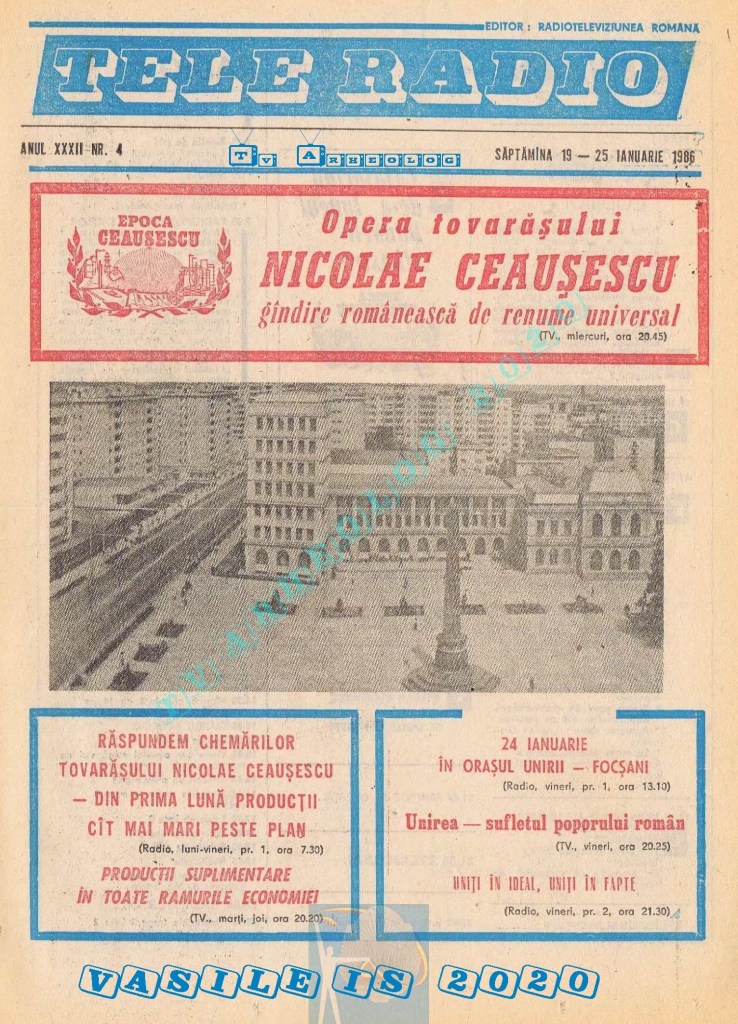 Vineri, 24 ianuarie 1986, de Ziua Unirii programul tipărit titra cu fond roșu o lozincă mare pe două pagini: „Trăiască unitatea de nezdruncinat a întregului nostru popor în jurul Partidului Comunist Român, al secretarului său general, tovarășul Nicolae Ceaușescu!” 😁