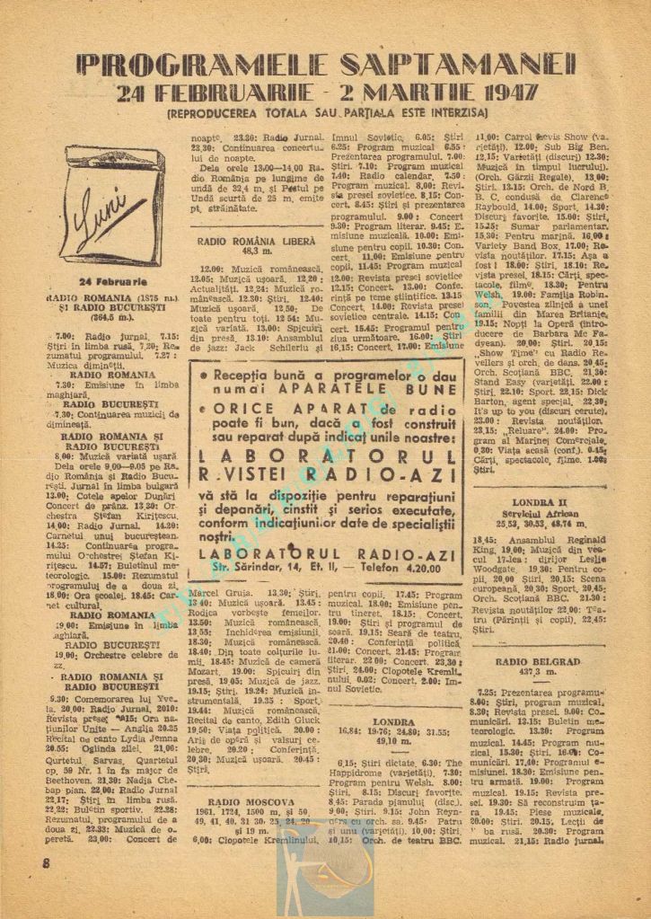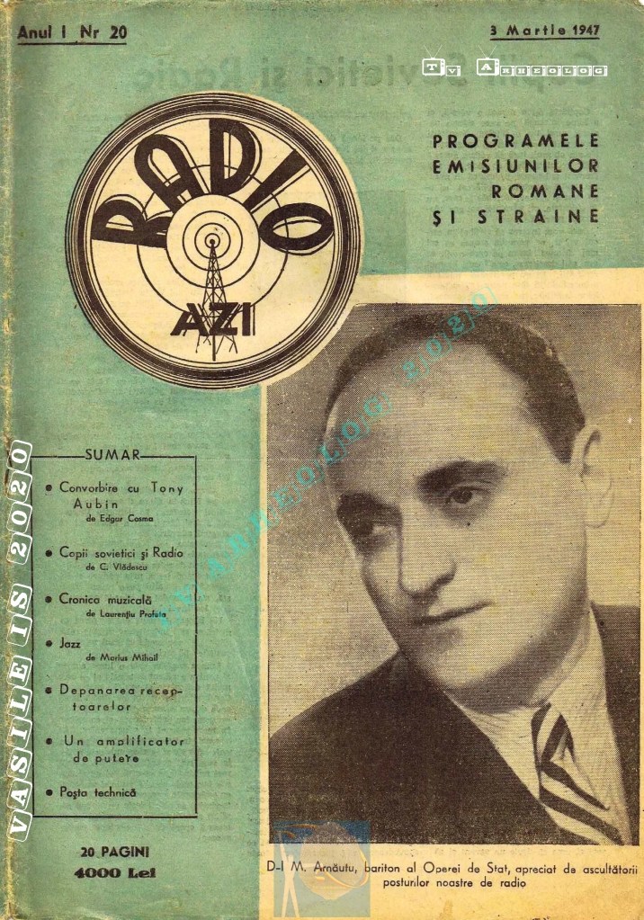 Ultima revistă „Radio Azi” din colecția mea. Așa cum reiese dintr-o fișă de inventar de la BCU Cluj-Napoca, ultima referire la revista Radio Azi este pentru numărul 22/1947, corespunzător perioadei 17-23 martie 1947.